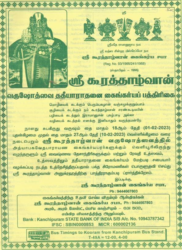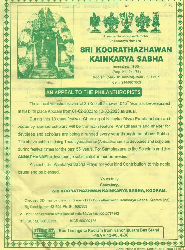 SRI KOORATHAZHWAN THIRUAVATHARA UTSAVAM AT KOORAM – 01.02.23 TO 10.02.23