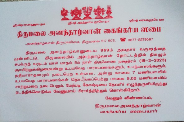 SRI ANATHAZHWAN 965TH AVATHARA UTSAVAM AT THIRUMALA – 24.02.19 – UTSAVA PATHIRIKAI